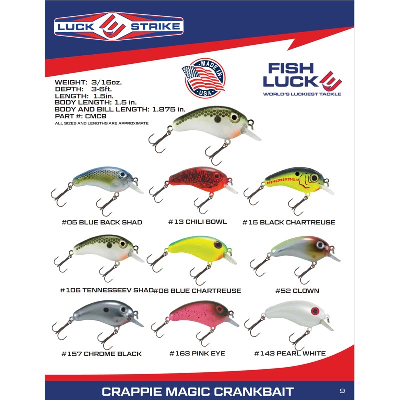- The Crappie Magic Crankbait from Luck E Strike is a shallow running panfish lure that is tremendous around brush and logs.