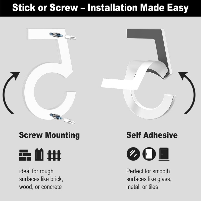 - 2 Mounting Methods: These adhesive house numbers come with both strong self-stick backing and screw-mounting options, easy to install on any surface