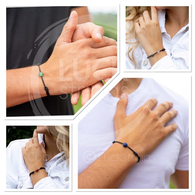 Luck Strings - Pulsera de cordón de cera para hombres y mujeres, unisex, lapislázuli cornalina ojo de tigres negro, turmalina, cuarzo rosa, amatista, amatista, regalo de joyería, Adjustable - opens from 5" to 10" inches, Poliéster Gema Nailon, Lapislázul