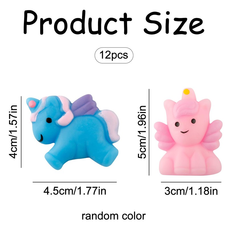 - Vibrant Unicorn Shapes: Each pack includes 12 unicorn squishies in random shapes, offering a fun and colourful variety that sparks the imagination.