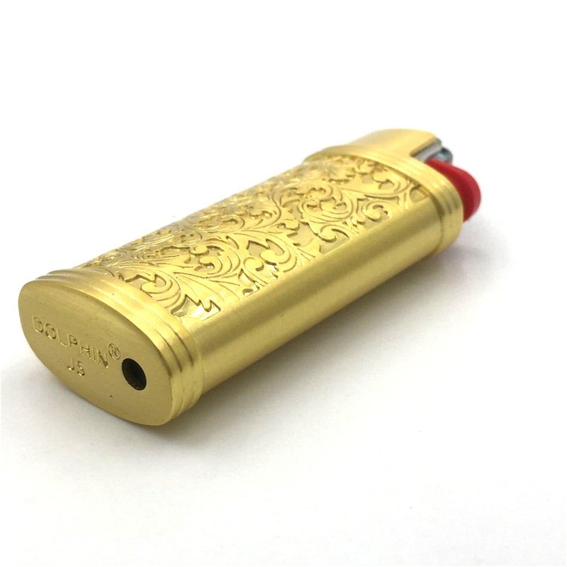lucklybestsellerゴールド色ヴィンテージメタルライターケースカバーホルダーMini Bicライターj5