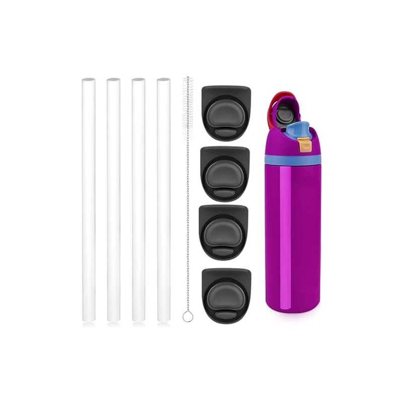 lucktao Replacement Stopper Compatible with Owala FreeSip,4pcs Stopper, 4pcs Straws & 1pcs Cleaning Brush - Spill Proof Accessories for 24oz 32oz Water Bottles