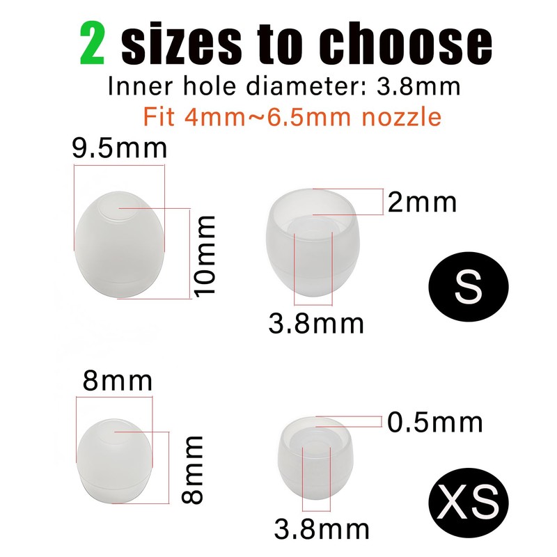 - These silicone ear tips are universally, fit 4.0mm~6.0mm nozzle, compatible with most earbuds, making them the ideal replacement for wired and wireless headphones.