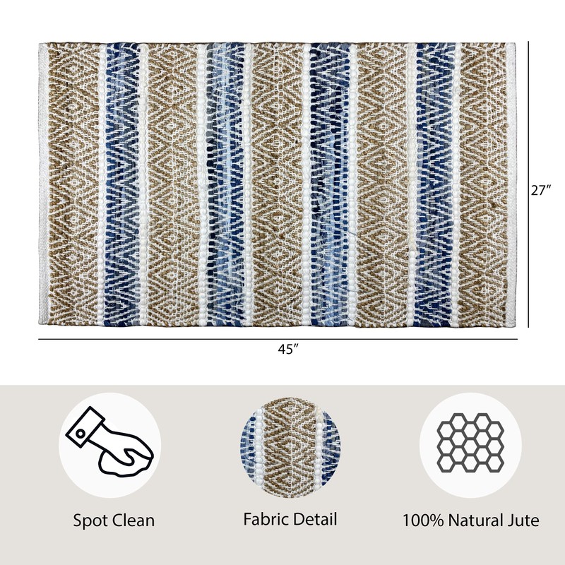 - PREMIUM DESIGN – The Cam Diamond Stripe 25x45 Denim Jute Accent Rug showcases an intricate and subtle design in neutral tones for a versatile addition to your home décor.