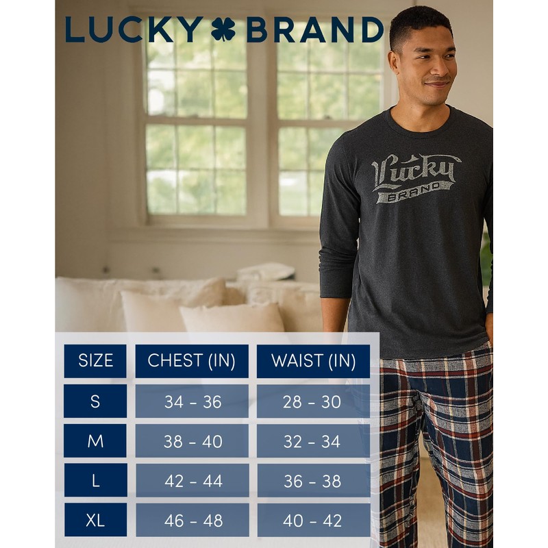• OFFICIAL LUCKY BRAND: Men's 2-piece pajama set; Born from the free spirit and laid-back lifestyle of Lucky Brand's Southern California roots
