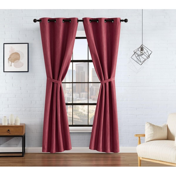 Lucky Brand β Solana Thermal Woven Window Curtain | Room Darkening & Thermal Insulated | Grommet Header | Set of 2 Panels & 2 Tiebacks | Measures 38" x 96" | Clay Red