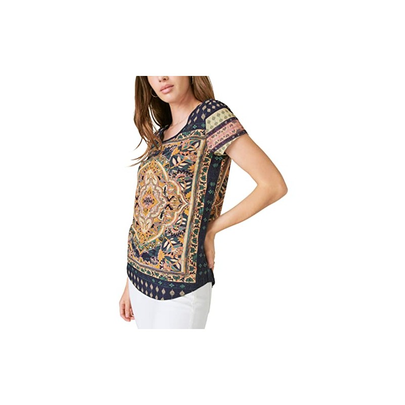 Lucky Brand Women's Persian Carpet Tee, Navy Multi, S
