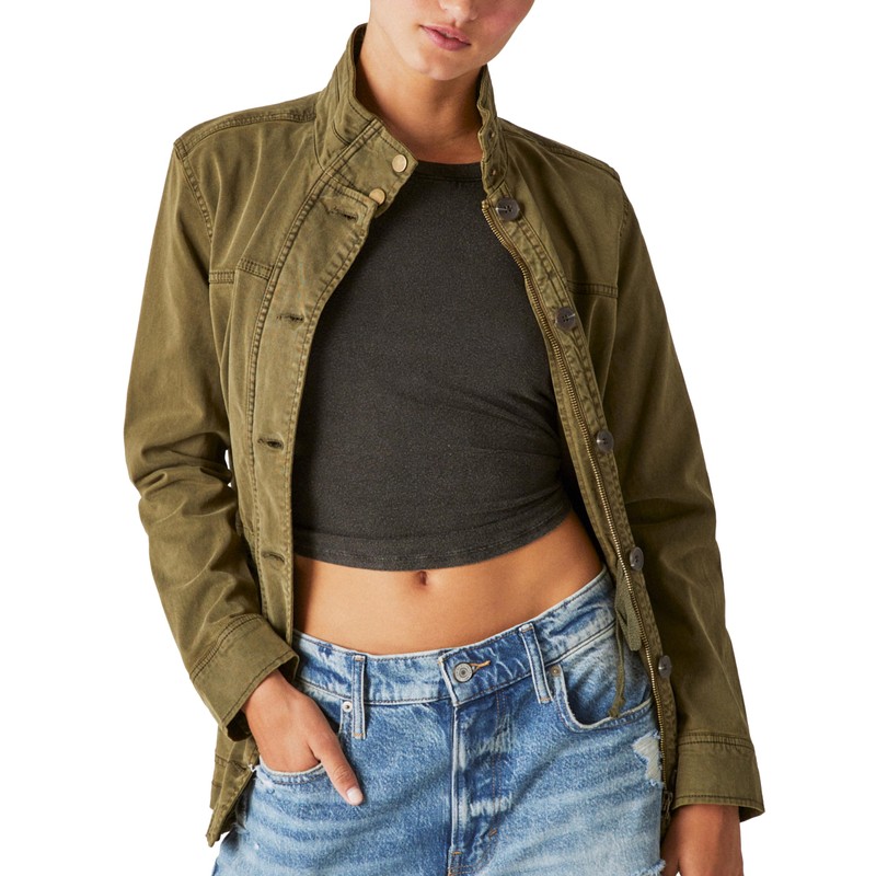 Lucky Brand womens Long Sleeve Button Up Two Pocket Utility Jacket, Olive Night, Small US