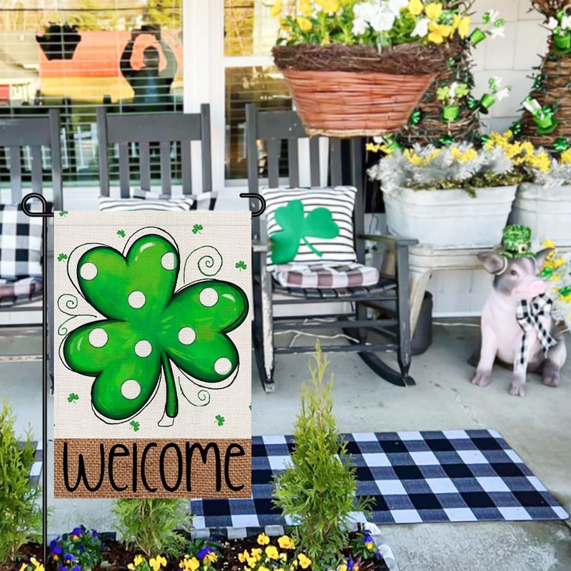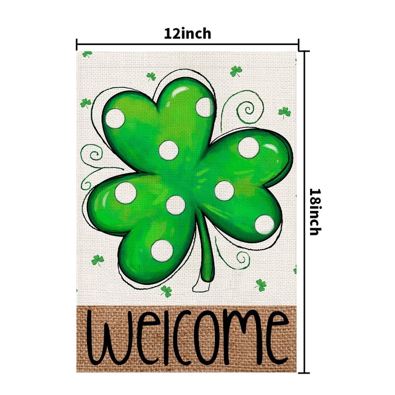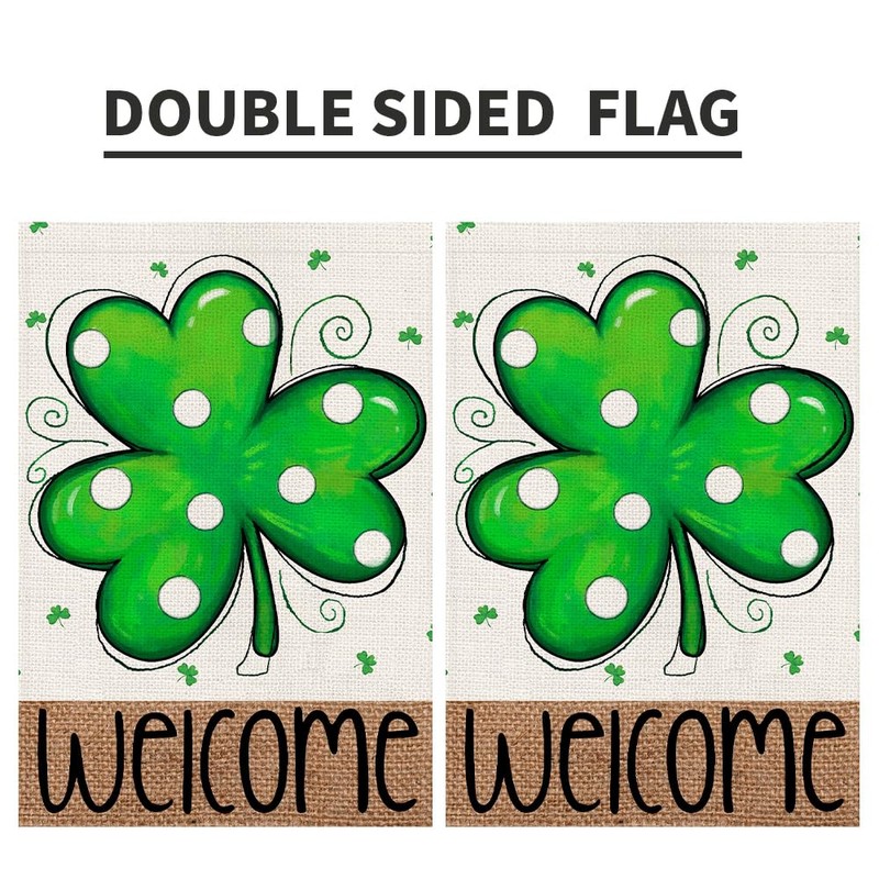 Lucky Clover Garden Flag Burlap 12x18 Double Sided, St Patricks Day Green Shamrocks Holiday Party Sign Welcome Small Flags Yard Outdoor Decorations DF667