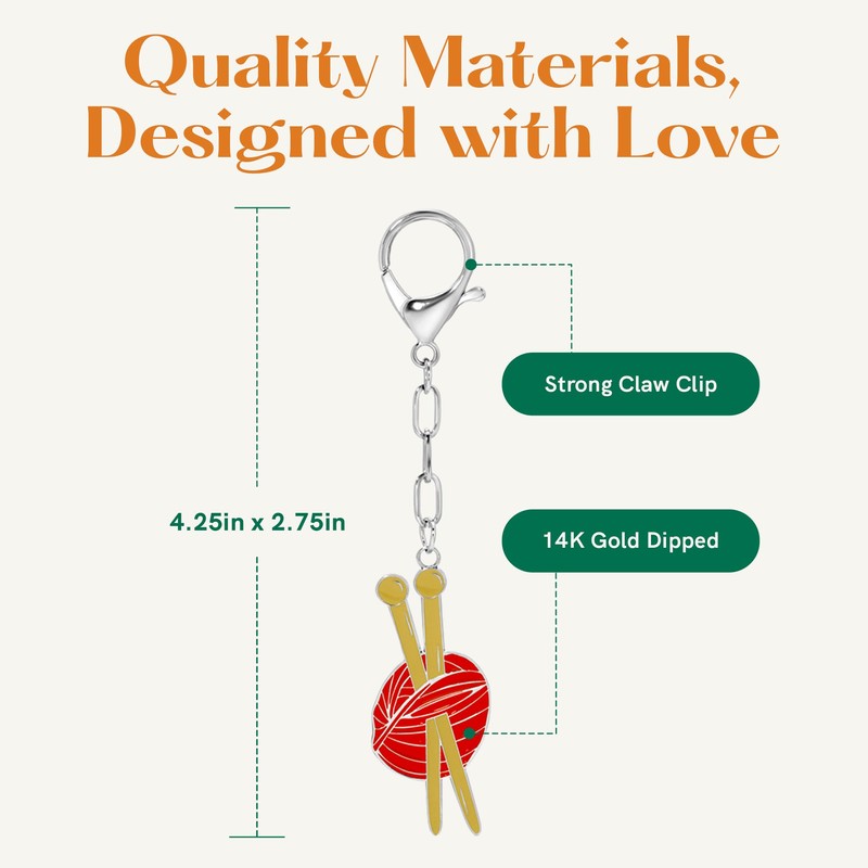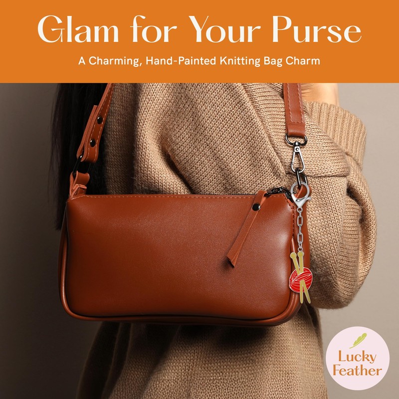 Lucky Feather Enamel Bag Charm/keychain - Knitting