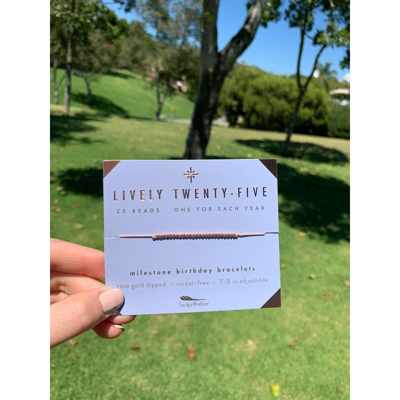 This is just the beginning of a whole new chapter in their life. Mark the occasion for your sister, daughter, niece, friend or girlfriend with the Lucky Feather Lively Twenty Five Birthday Bracelet, featuring 25 dainty 14K rose gold dipped beads - one to represent each magical year of life. A strong contender for any 25th Birthday ideas for her.