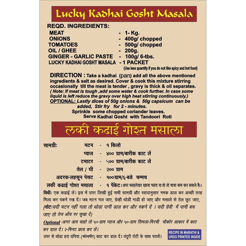 - Easy to follow recipe printed on the back of the box to enjoy the aromatic Khadai flavor.