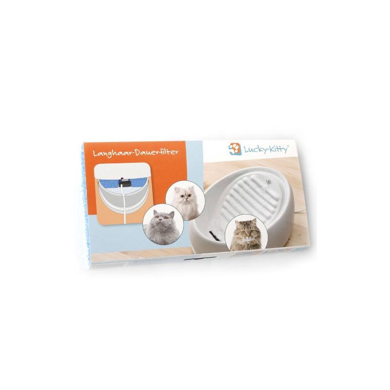 The Lucky-Kitty long-hair permanent filter is a sponge-like permanent filter, meaning it can be used for many months and should be washed or boiled regularly to keep it germ-free and clean.