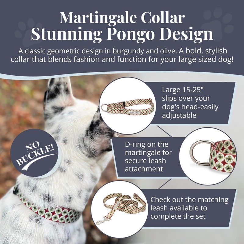 Lucky Love Dog Martingale Dog Collar - Adjustable, No-Slip, Durable, & Soft Webbing Collar for Male and Female Dogs Ideal for Training & Walking - in Unique Pongo Pattern, Large Size