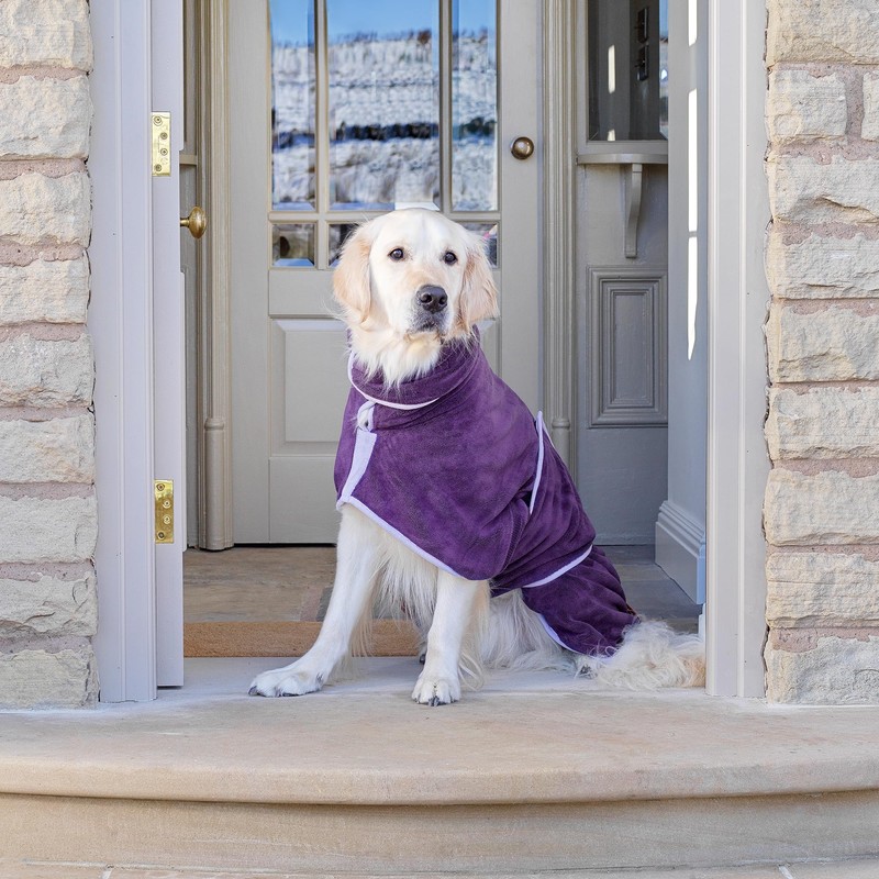 Lucky Paws® UK Dog Drying Coat - Luxurious Double Layer Dog Towel Robe - Dry Your Dogs in Minutes - Ultra Absorbent Drying Robe & Super Soft Dressing Gown (M, Aubergine)