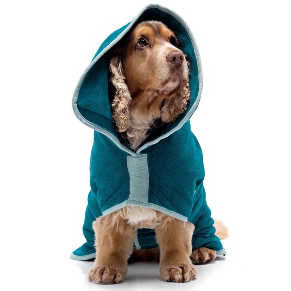 Lucky Pooch Dog Robe - Luxurious Dog Bathrobe - Ultra Absorbent Dries Your Dogs in Minutes! Double-Layer, Super Soft Towel and Bath Robe All in One (XXL, Teal)