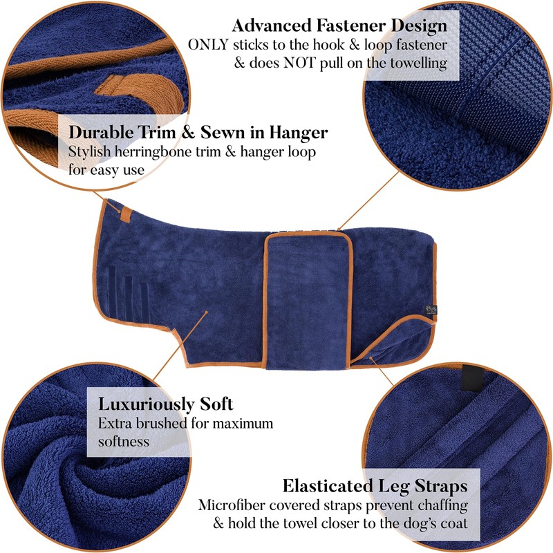 - 🐶 MICROFIBER-COVERED LEG STRAPS PROTECT FROM CHAFING! At Lucky Pooch, we care about every detail of your dog’s comfort. Our dog drying robe comes with microfibre-covered leg straps to stop any nasty chafing from the elastic - a thoughtful feature that cheaper dog towel robe alternatives just don’t have. No more discomfort for your pup! It’s the perfect dog bathrobe for drying dogs! Choose Lucky Pooch dog robes for after bath time for a comfortable, faster and hassle-free drying experience.