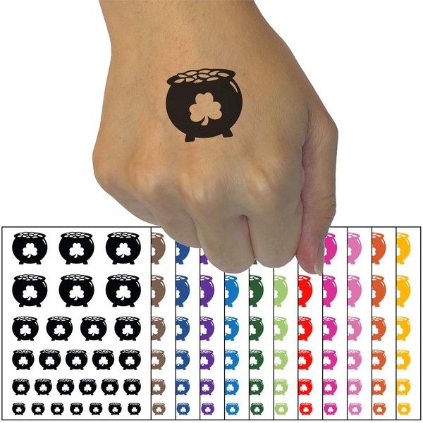 Lucky Pot of Gold with Shamrock Saint Patrick's Day Temporary Tattoo Water Resistant Fake Body Art Set Collection - Light Green (One Sheet)