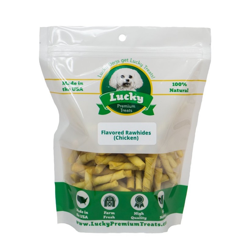 Lucky Premium Treats Chicken Basted Rawhide – All-Natural Rawhide and Beef Dog Treats for Extra Small Dogs, Gluten Free Premium Toy Breed Dog Treats (50 Chews)