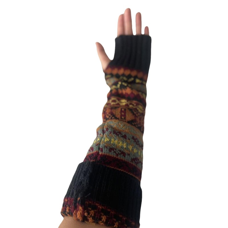 - STYLE: Bohemian-inspired knit pattern adds a fashionable touch to these arm warmers, perfect for layering with various outfits!Why we design this style arm warmers for bohemian style is always catching the trend and colorful colors give people happy feeling;Also a feeling or halloween and christmas feel!
