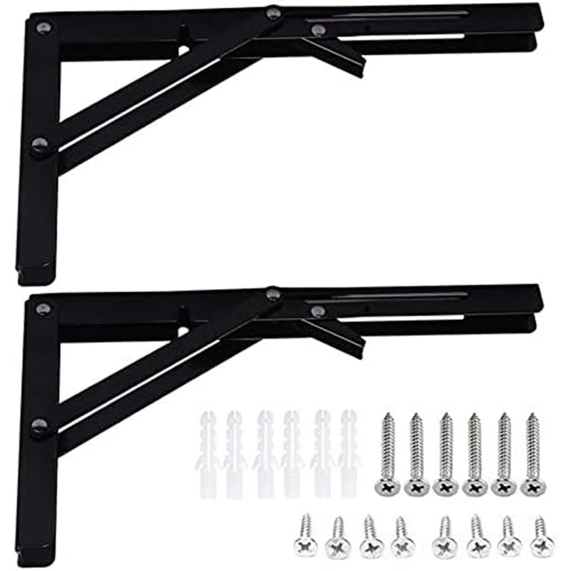 LUCKYBEE 2-Piece Shelf Bracket, L-Shaped, Shelf Support, Bracket, Foldable, Iron, Hardware, Load Capacity 110.2 lbs (50 kg), 7.9 inches (20 cm), Black)