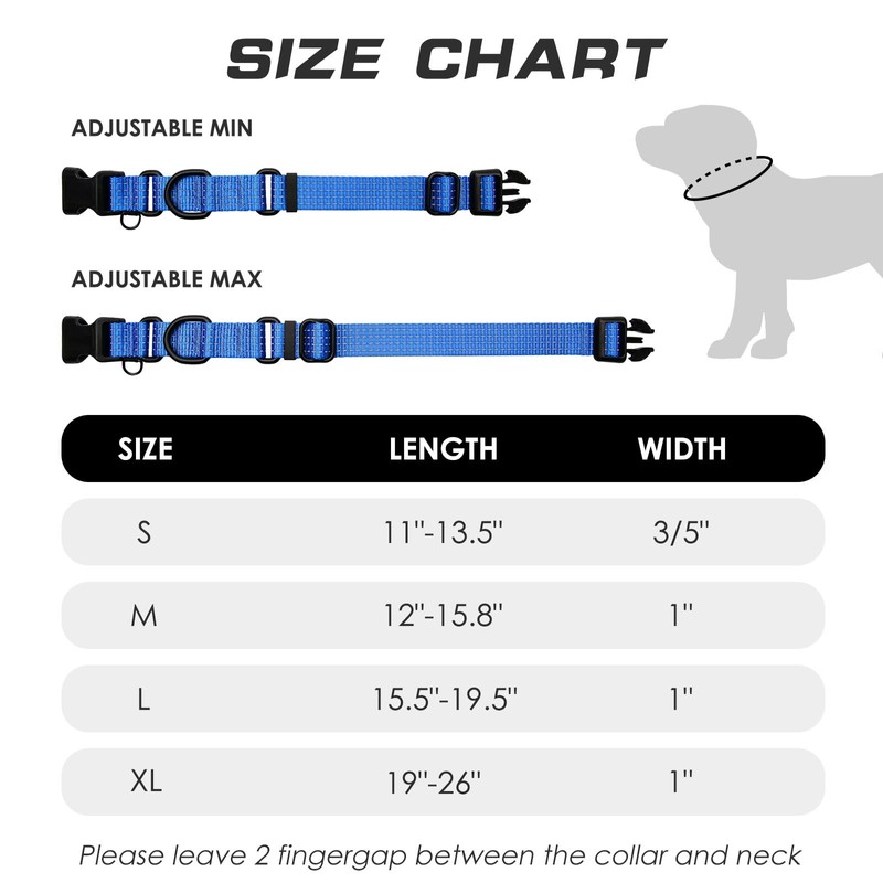 - 1.[ADJUSTABLE LENGTH] Martingale dog collar is easy to adjust and suitable for puppies, Medium Large X-Large breeds. Available in 4 sizes, S [3/5" x 11"-13.5"], M [1" x 12"-15.8"], L [1" x 15.5"-19.5"], XL [1" x 19"-26"]. Please make sure leave 2 fingers between neck and collar. When measuring your dog's neck, please measure dog's neck near the top portion and be sure to press down through all its fur to get an accurate measurement.