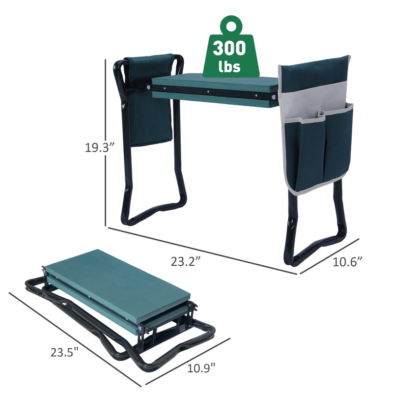 Our garden kneeler comes with an additional EVA kneeling pad and two tool pouches for easy storage of various garden tools and water bottles. This folding garden seat is compact in size, saving storage space. Weighing only 5.6 pounds, this gardening bench is portable and convenient to use. Constructed from high-strength steel, it has a maximum weight capacity of up to 300 lbs. The armrests on both sides ensure easy standing for the elderly after long hours of gardening, making it an ideal gift for grandparents.