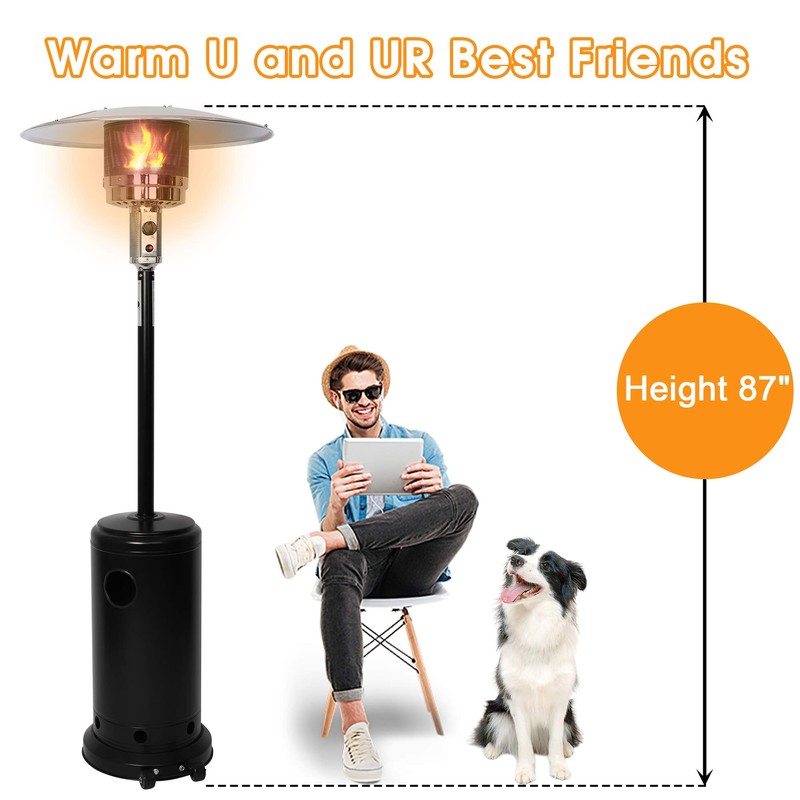 - 【Wide Heat Range】High output of 36000 BTU keeps steady warmth. Heat range up to 15 feet. 87” tall patio heater perfect height warm you up when you sit, even warm the ground area.