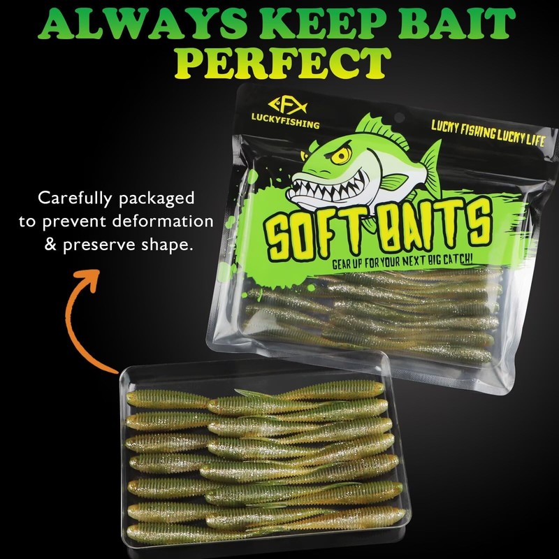 • MULTIPLE COLORS & SIZES SOFT BAITS: Multiple sizes & colors to match any fishing condition. Size-Pcs: 3in-40pcs, 3.5in-30pcs, 4in-20pcs. Five Colors to Choose: Pearl white, Brown Magic, Morning Dawn, Green Flash, Purple Pearl. Whether you're targeting fish in stained, clear, or murky waters, the proven color options provide versatility for any condition. Carefully packaged to prevent deformation & preserve shape,which always keep soft bait perfect.