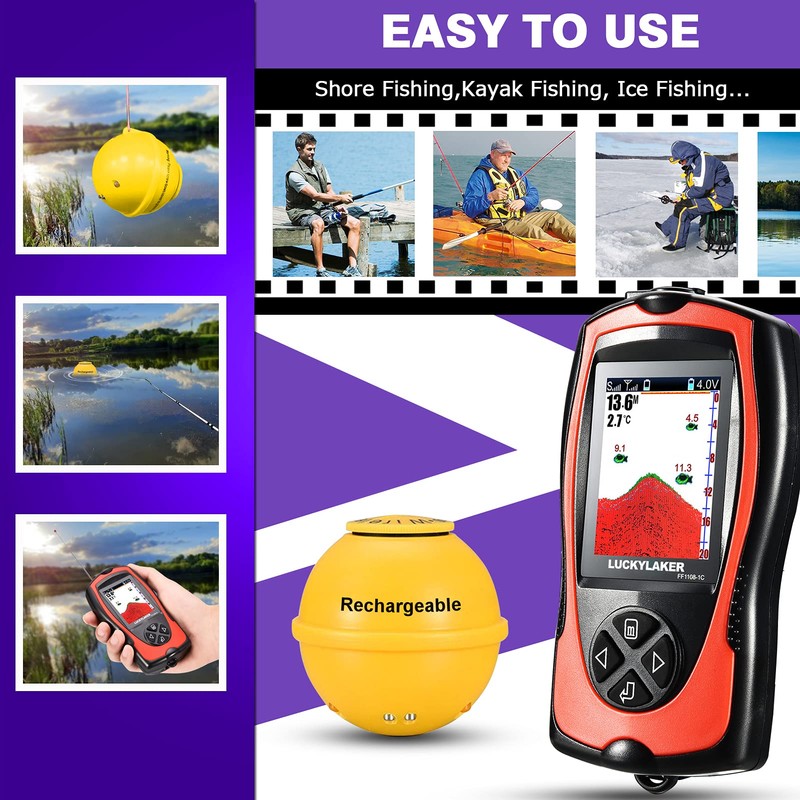 LUCKYLAKER Sonar Kayak Fish Finder Portable Water Handheld Depth Finder Boat Transducer Wireless Fish Finders Sea LCD Screen Fishing