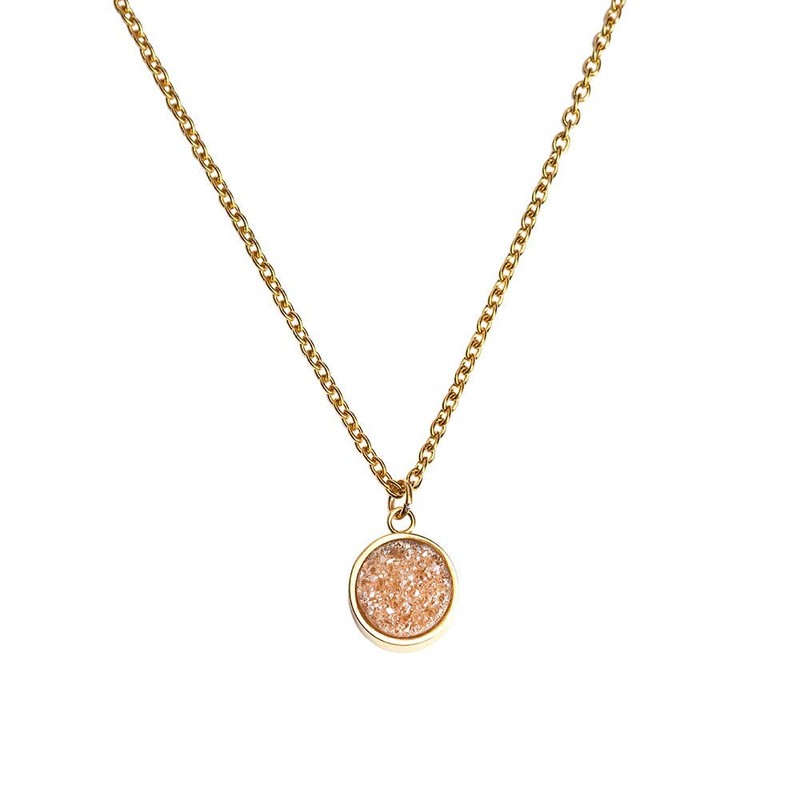 LuckyLy Collar de Mujer con Cuarzo Color Champaña, Cadena de Acero Inoxidable con Baño Oro 18k y Dije de Mujer con Piedra Drusa – Regalos para Mujer Originales y Regalos Mamá, Modelo Anya