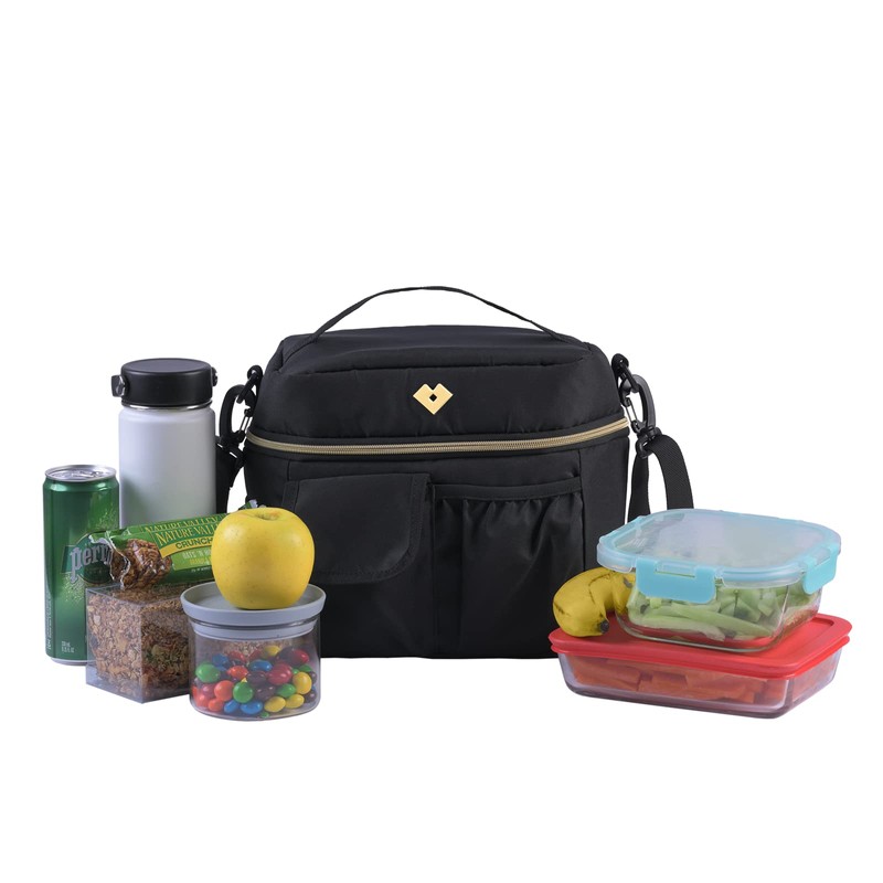 LuckyLy Lonchera para Mujer Térmica e Impermeable Grande, Moderna con Múltiples Compartimentos, Ideal como Bolsa de Almuerzo para Oficina, Lunch Box o Hielera Portátil – Modelo Krista, Negro