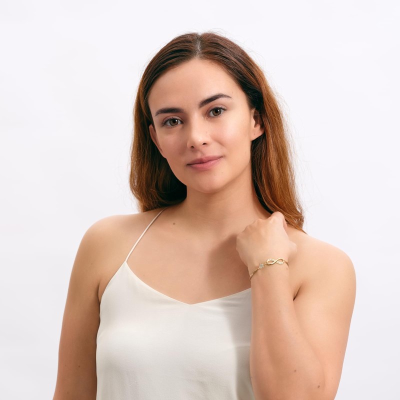 - DISEÑO ESPECTACULAR: La pulsera para mujer de corazón e infinito con zirconia cúbica es perfecta. Es uno de los brazaletes mujer más espectaculares, compuesto por una cadena de acero inoxidable con baño de oro 18k y dijes llenos de zirconias que brillan increíble. Es de las pulseras mujer más bonitas, además tiene un mecanismo ajustable muy cómodo. Definitivamente, es de los regalos para mujer originales de Navidad y regalos para novia San Valentín y 14 de febrero ideales, ¡amor a primera vista!