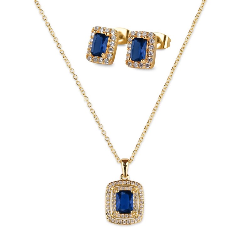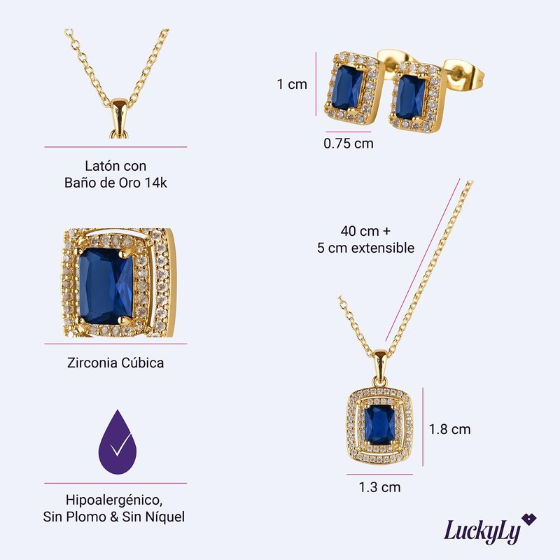LuckyLy Set de Joyería para Mujer Oro 14k con Zirconia Cúbica, Juego de Collar y Aretes Mujer – Accesorios Ideales como Regalos para Mujer Cumpleaños y Regalos para Mamá Navidad, Modelo Elia Zafiro