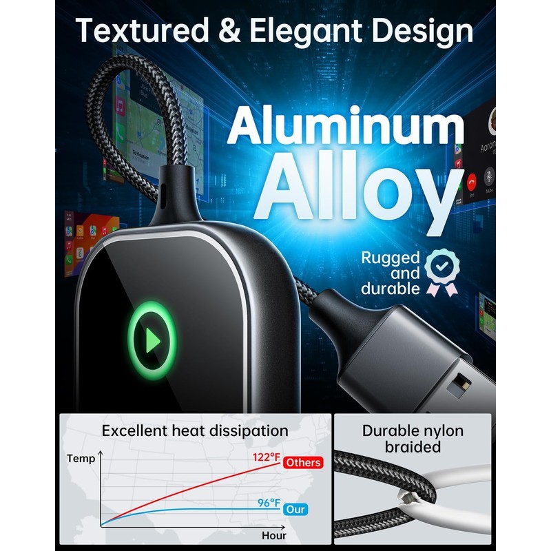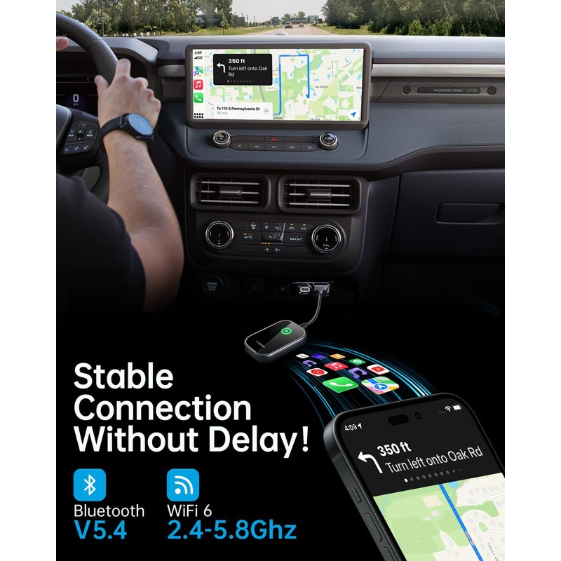 - [Easy to Use] Plug and play design for this Wireless Carplay, suitable for all motorists. Just plug and play, no need for any extra drive, apps, or troublesome system upgrades. After the first setup, our adapter will automatically activate the CarPlay wireless connection every time the car starts