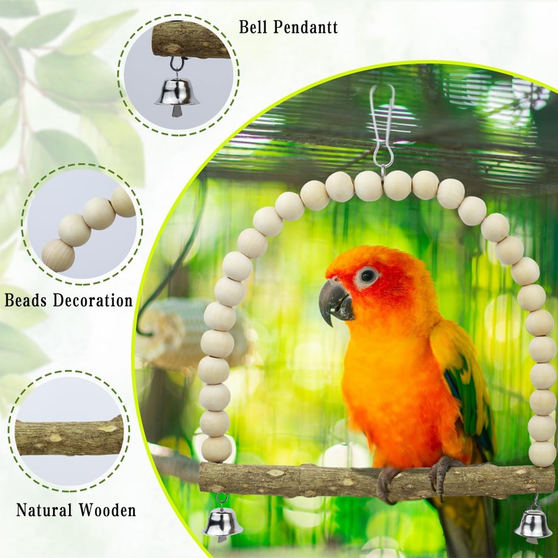 The thoughtfully designed swing features multiple colorful beads and log-colored poles that offer varied textures and resting spots for your bird to explore.