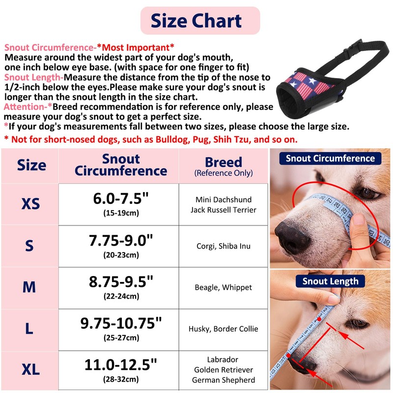 - Muzzle for Medium Sized Dog: Size M is suitable for snout circumference between 8.75"and 9.5". Please measure twice before buying. The dog muzzle medium sized dogs is fit for Beagle, Whippet, and so on
