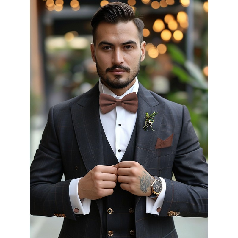 • Brown Bow Tie: Elevate your style with our sleek coffee bow ties for men; they maintain a crisp, professional look throughout the day; Ideal for weddings, business meetings, or any special occasion
