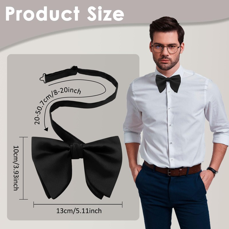 - OVERSIZED PRETIED BOWTIES: Size 5.11in long x 3.93in wide, neck strap can be adjusted up to 20in, easy to put on and take off; Adding elegance and sophistication to the appearance of adult men/big boys