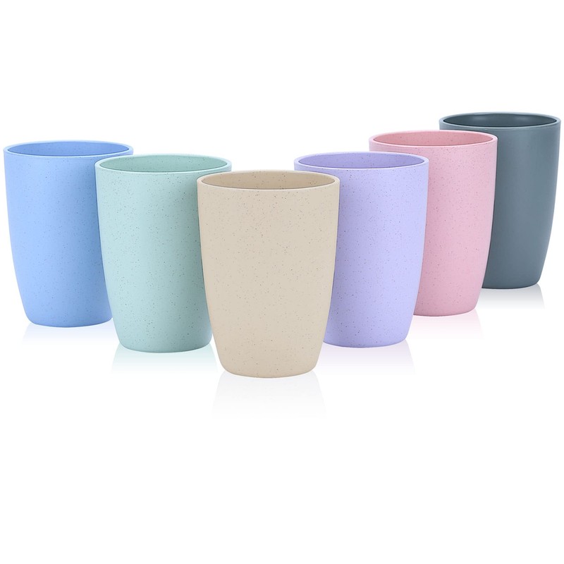 LuckyZone Juego de 6 vasos reutilizables con pajita de trigo, irrompibles, aptos para lavaplatos, sin BPA y ecológicos (6 colores)