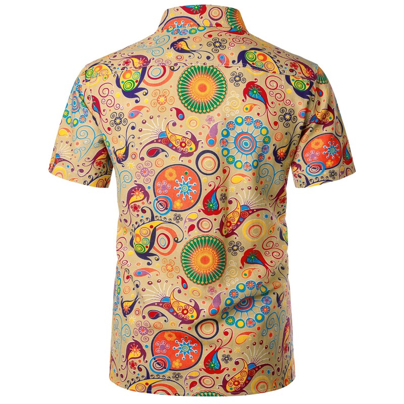 • Style: summer tops, casual beach shirt, regular fit, 1 chest pocket, short sleeves, button placket. Traditional ethnic tribal clothing, digital printing process, retro fashion style.