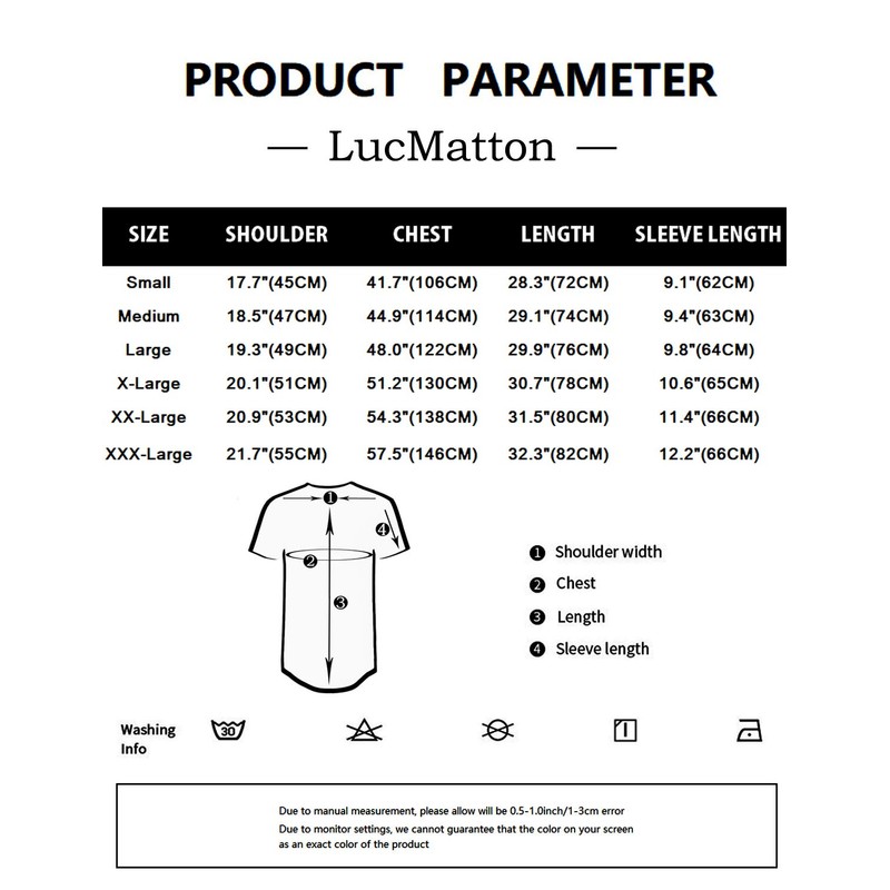 Size information: S: shoulder 44.5 cm, chest circumference 105.9 cm, length 71.9 cm, sleeve length 23.1 cm. M: shoulder 47 cm, chest 114 cm, length 74 cm, sleeve length 23.9 cm. L: shoulder 49 cm, chest 121.9 cm, length 76 cm, sleeve length 24.9 cm. XL: shoulder 51.1 cm, chest 130 cm, length 78 cm, sleeve length 26.9 cm. XXL: shoulder 53.1 cm, chest 137.9 cm, length 80 cm, sleeve length 29 cm. XXXL: shoulder 55.1 cm, chest 146.1 cm, length 80 cm, sleeve length 31 cm.