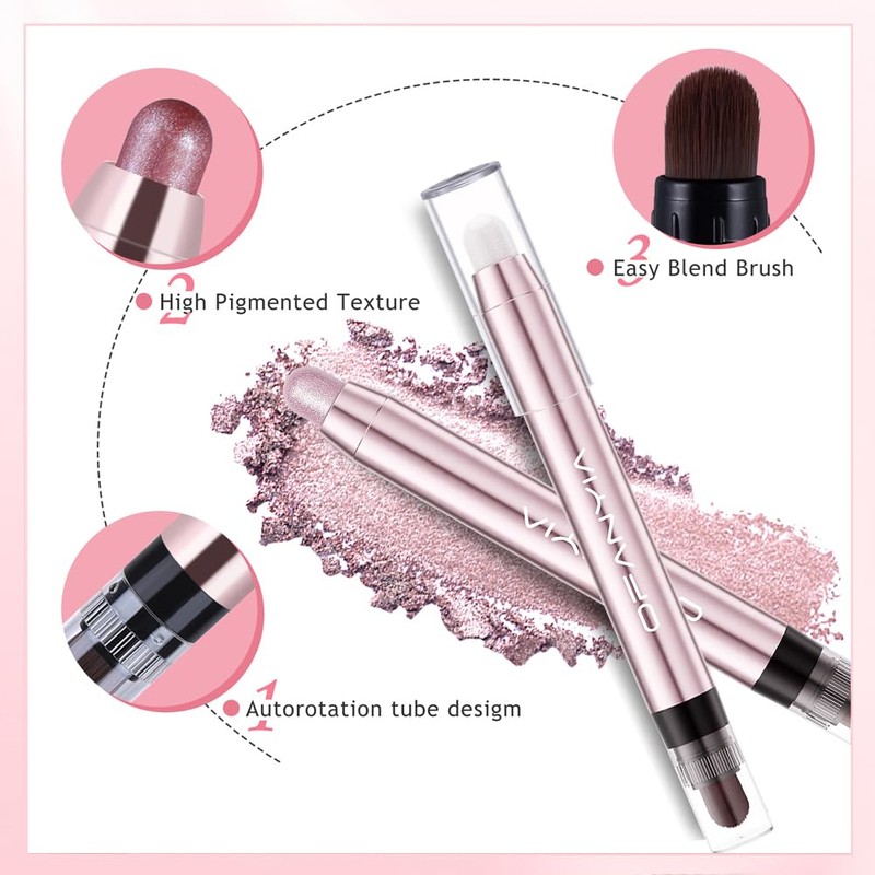 - DOUBLE-HEADED DESIGN -- The cream eyeshadow has a brush as a smudger which can blend the eyeshadow evenly.Brush on one end. Makeup stick on other end.Let you make up outside easier.
