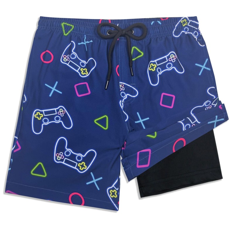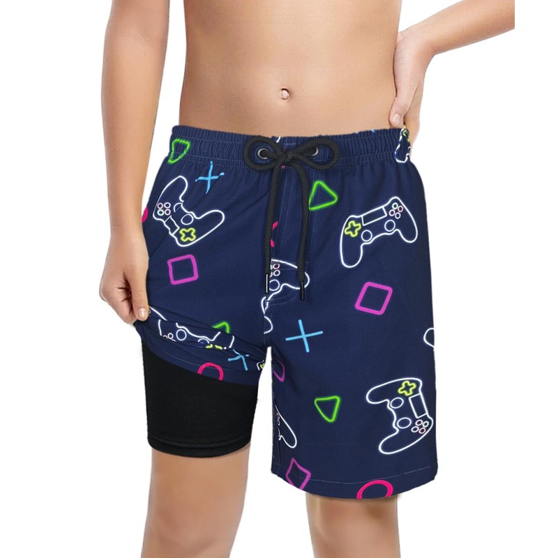 LUCOWEE Boys Swimsuit Trunks Boxer Brief Lined Chafe-Free Swimming Shorts Swimsuits Sandless Stretchy Functional Drawstring Light Weight Quick Dry UPF 50+ Gamepad Navy Size 10 12 Years Old