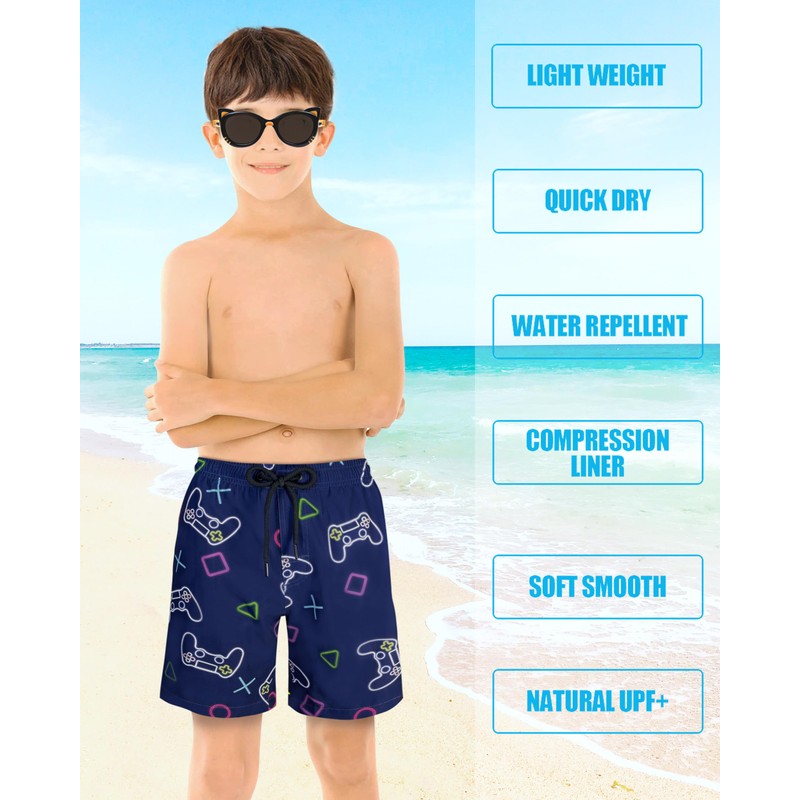 - COMFORTABLE BOXER BRIEF LINER - Super soft smooth material for the built-in compression liner, full size boxer lining is not too tight,considering your kids need some give in the growing period.This swimming trunks will allow your boys to enjoy the beach,pool & water park without chafing burn,comfortable & supportive.Also it's not only a bathing suit,but also a nice piece for playing, running, training, workout.