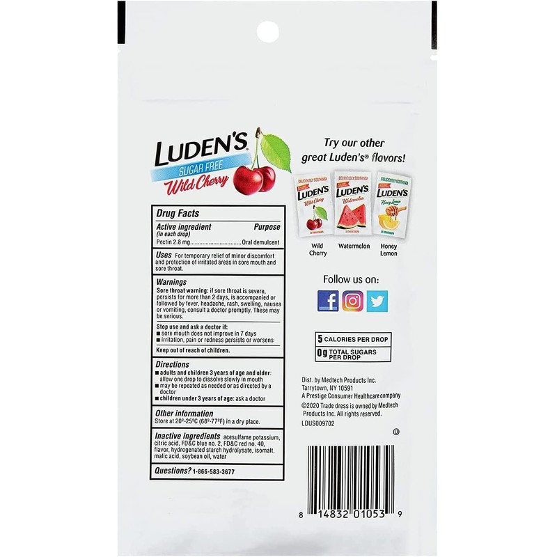 - Luden's Sugar Free Wild Cherry Throat Drops soothe and relieve minor, everyday throat irritation