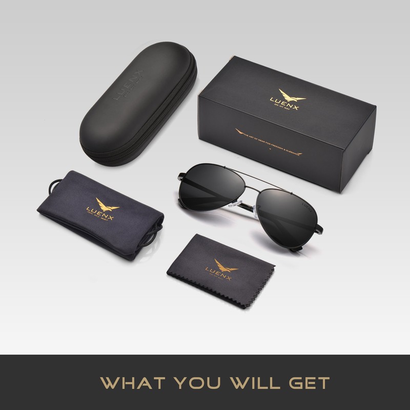 - 30 DAY MONEY BACK GUARANTEE ▶ 100% satisfaction guaranteed,First Choice as A Gift.Unisex.Aviator Style.Good for Driving & All Out Door Activities for all Day;Limited Time Special Pricing and Elegant Glasses Accessories for Free, Get LUENX'S Sunglasses Now;