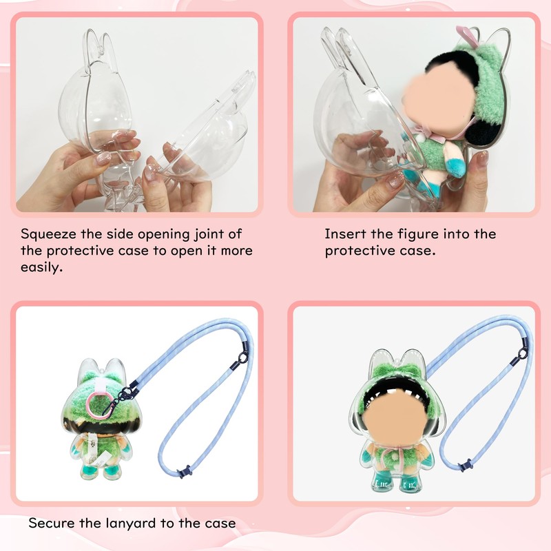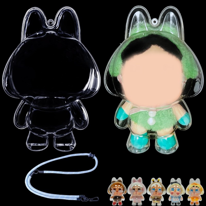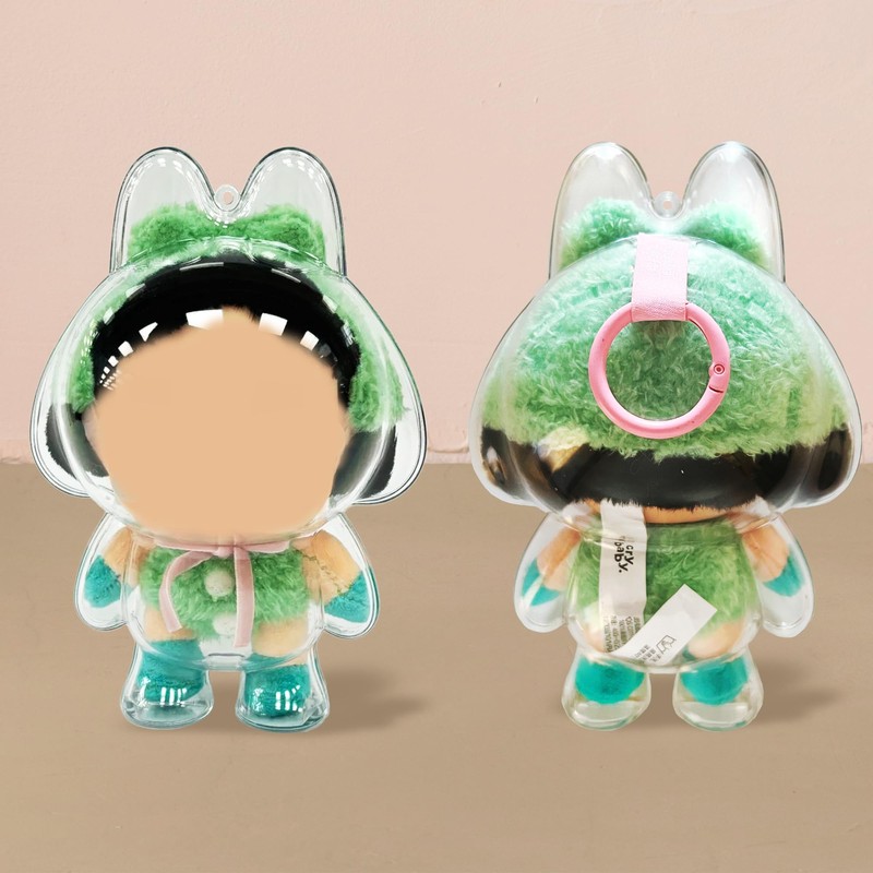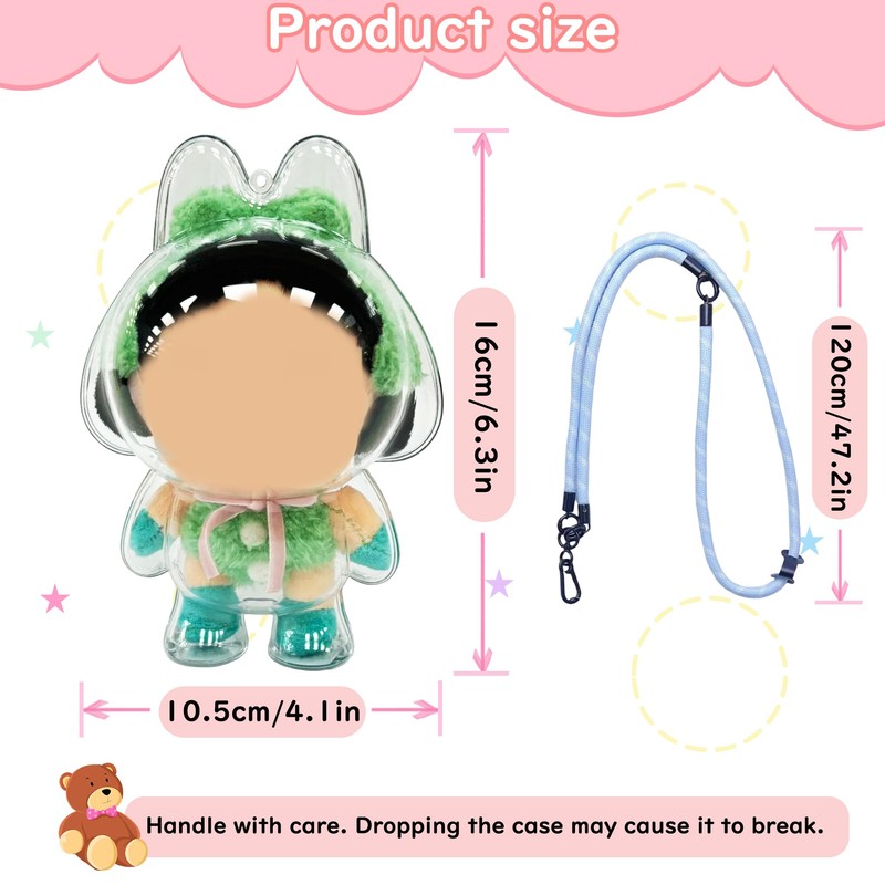 LUFEEMGA Protective Case for Crybaby Doll,Clear Plastic Display Standing Style Protective Cover PVC Bag Hanging Model Box with Keychain