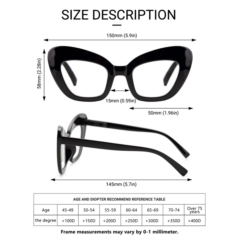 - ✿【𝐅𝐚𝐬𝐡𝐢𝐨𝐧 𝐂𝐚𝐭-𝐄𝐲𝐞 𝐃𝐞𝐬𝐢𝐠𝐧】--The cat-eye design is quite trendy among women today, which can fit various face shapes well and showcase the wearer’s style and taste. They are also a great choice as a piece of fashion accessory, and differently colored frames can be matched with different outfits to create a variety of styles and looks.