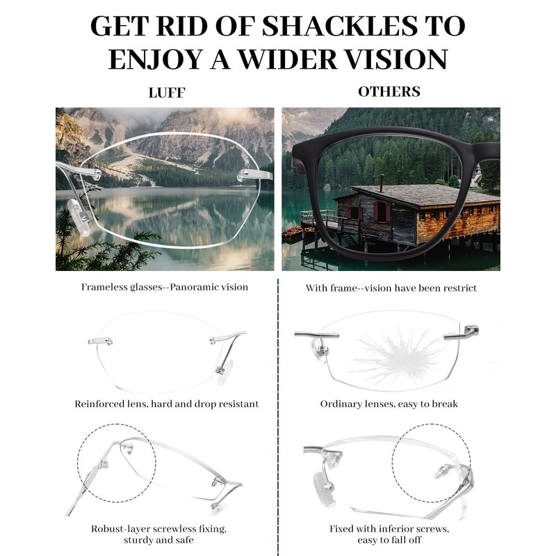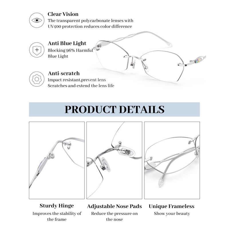 LUFF LUFF Rimless Reading Glasses for Women Blue Light Blocking Lightweight Metal Classic Computer Readers Anti Eyestrain